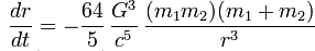 Source Gravitational Radiation, Burtschinger & Taylor. This equation applies to black holes at a sensible distance apart (not contiguous ones), but what it tells us is that even if they orbited ten times further apart, they would still approach each other at about 60km/s (yes, kilometres per second). This is a fast approach for objects that are already ten thousand times closer than the size of an atom. And the closer they get, the faster they approach. (In Haramein's model, the event horizons are already touching.)